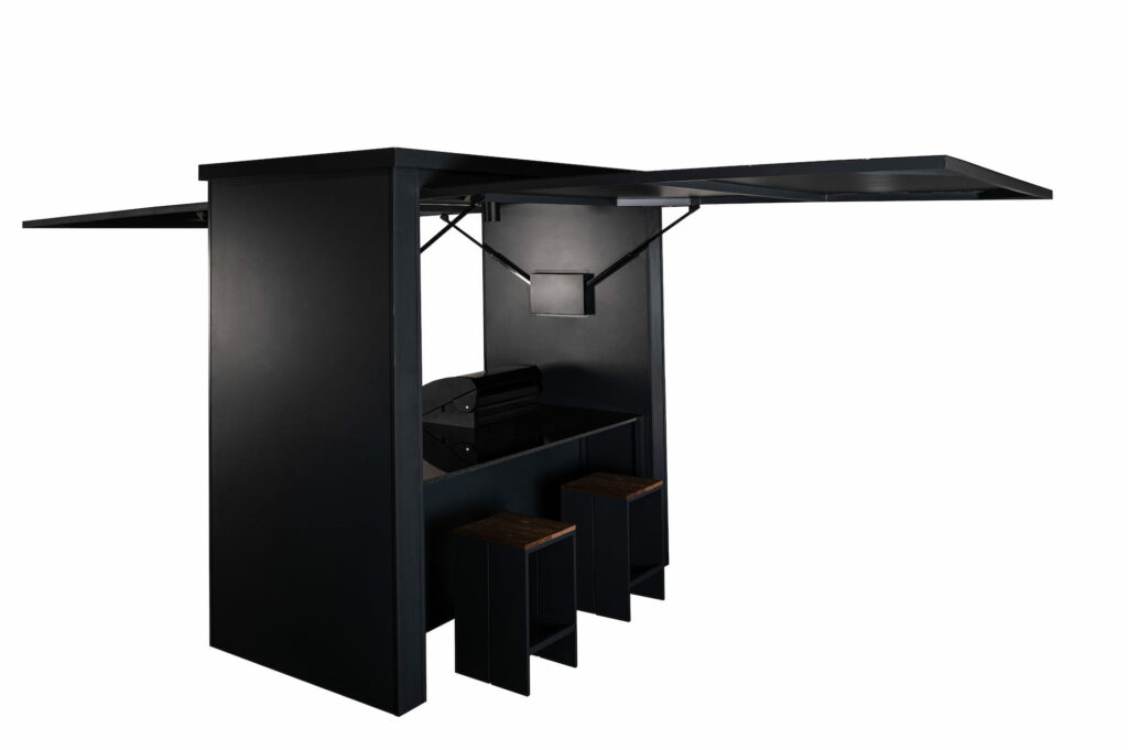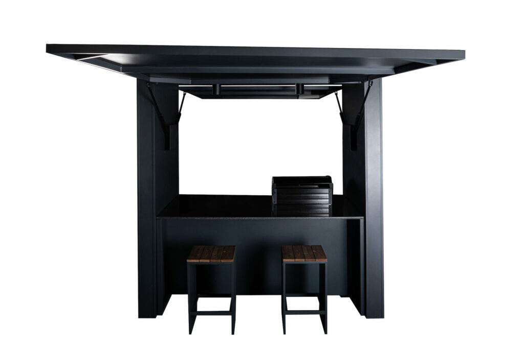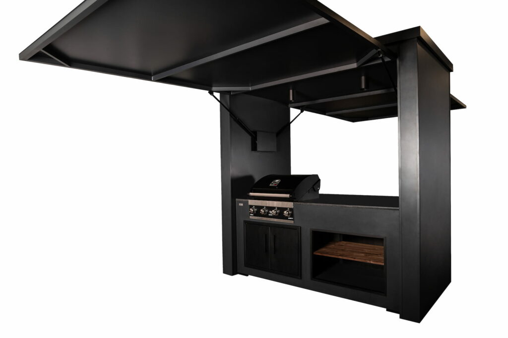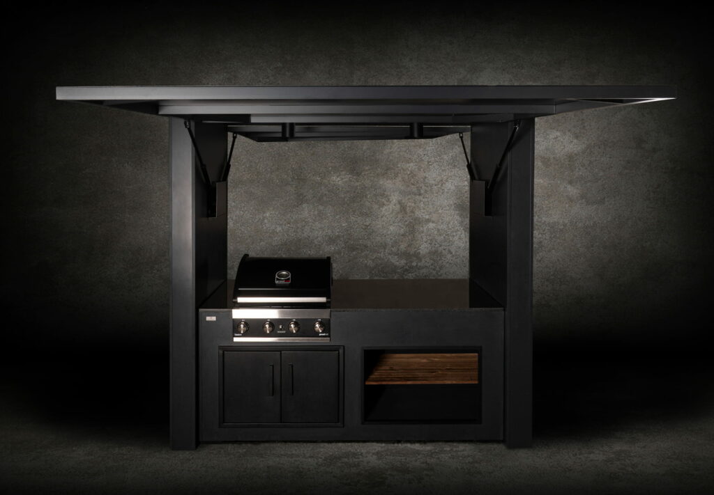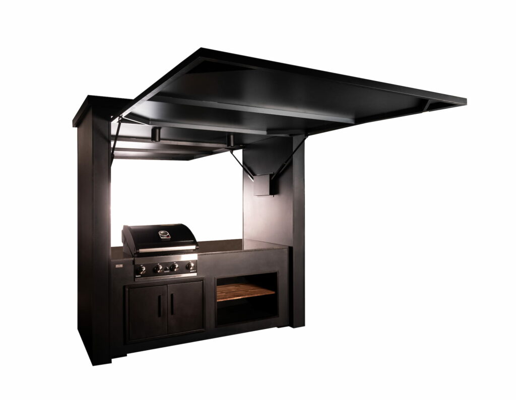 Crill Cabana on uuenduslik väliköögilahendus. Elektriliselt avatavate esi- ja tagapaneelidega baari stiilis cabana pakub nii kaitset ilmastiku eest kui ka mugavat grillimise kogemust. Cabana ühel poolel on väliköök koos grilli, kapi ja riiuliga. Teisel poolel on mugav baarilett koos kahe baaritooliga. Kvaliteetne nelja põletiga gaasigrill tagab ühtlase kuumuse ja täpse temperatuuri juhtimise. Cabana avatud esiosa koos termopuidust riiuliga ning roostevabast terasest ustega muudavad selle praktiliseks väliköögiks, kus on ühendatud funktsionaalsus ja Põhjamaine disain. Lisafunktsionaalsust pakub mugav baarileti lahendus.