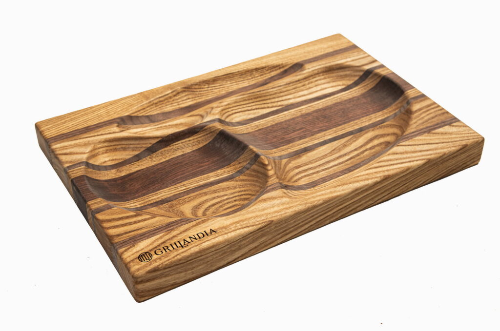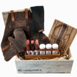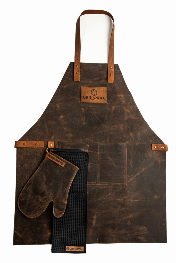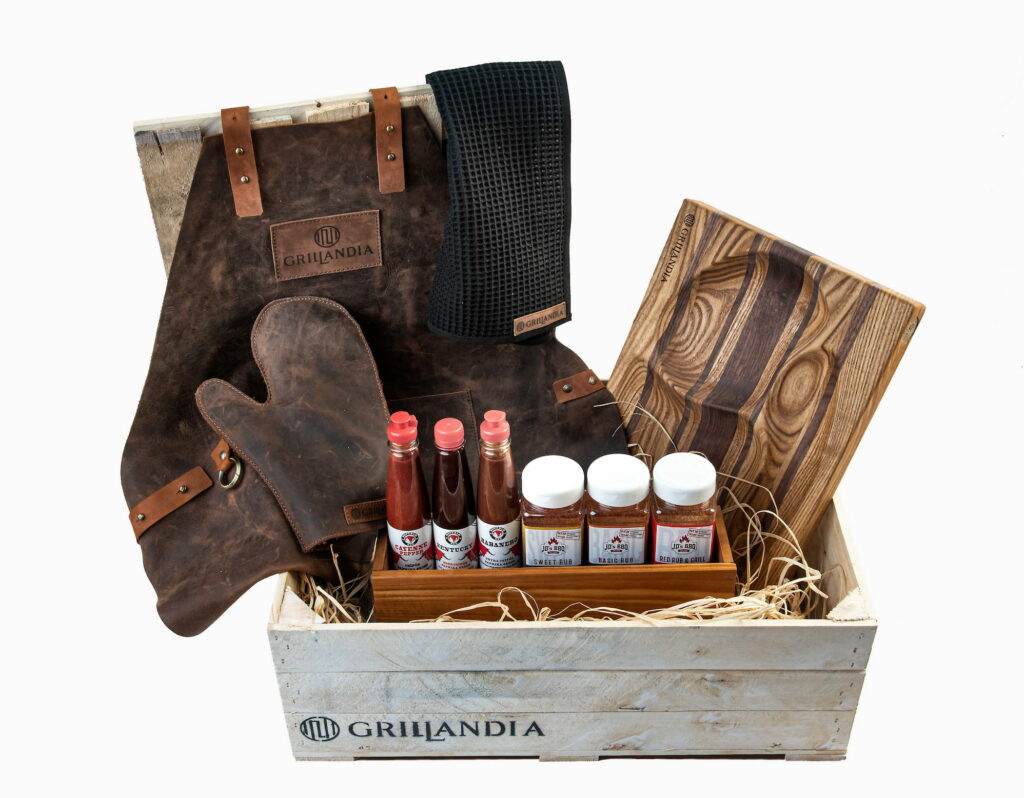 Parim kingitust tõelisele grillmeistrile! Komplekt sisaldab puidust maitseainete ja kastmete karpi, mis on täidetud kvaliteetsetest toormaterjalidest valmistatud BBQ kastmete ja maitseainesegudega. Lisaks kuulub komplekti täiskomplektne grillmeistri riietus: 100% veisenahast ja kuumuskindel põll, sellega sobivat kaitsekinnas ning 100% puuvillasest vahvelkangast valmistatud rätik. Kinnas ja rätik saab mugavalt põlle külge riputada, et need oleksid alati käeulatuses nii toidu ettevalmistuse kui küpsetamise ajal. Komplekti kroonib kvaliteetne kaks-ühes lõikelaud ja serveerimisalus, mis on valmistatud 100% orgaanilisest mustast pähklist, jaapani akaatsiast ja tammest. Tegemist on käsitööna valminud tootega. Pind on töödeldud orgaanilise õliga, mis on antibakteriaalsete omadustega. Lõikelaud ei nürita nugasid ning on õige hoolduse korral äärmiselt vastupidav. Unikaalne ja praktiline kolme kausiga serveerimispool sobib suurepäraselt toidu serveerimiseks.
