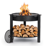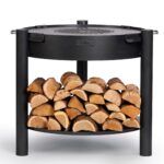 Lõkkealusel on praktiline alumine riiul, mis võimaldab hoiustada küttepuid ning samal ajal kaitseb maapinda kõrge kuumuse eest. Külgedele keevitatud käepidemed muudavad lõkkealuse liigutamise ja soovitud kohta paigutamise lihtsaks ning ohutuks.