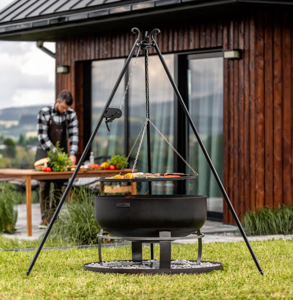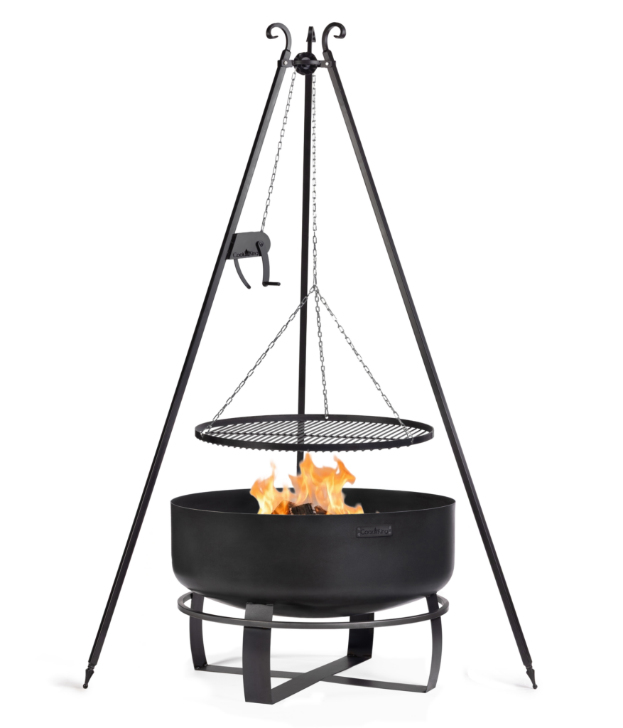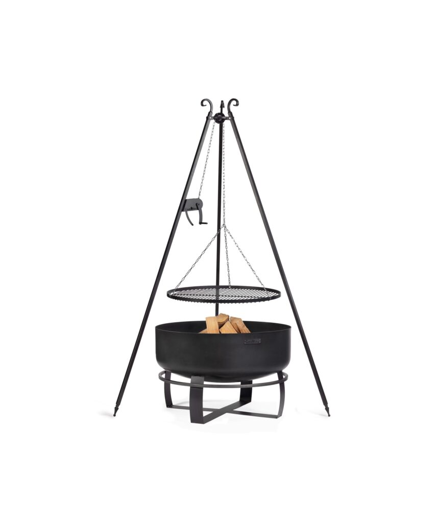 Kvaliteetne Viking XXL 80 cm lõkkealus koos 180 cm kolmjalaga on loodud lahtisel tulel toidu valmistamiseks ja õues grillimiseks. Koos loovad need praktilise lahenduse ühisteks toiduvalmistamisteks ja mõnusaks ajaveetmiseks aias.