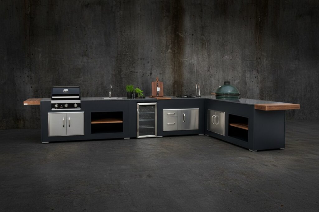 Medium Well on L kujuline väliköök, see moodustab täisnurkse terviku, millel on väga suur tööpind ja lai funktsionaalsus. See on suur ja terviklik väliköök, ideaalne suurema terrassiga eramaja aeda. Komplekti kuuluvad kvaliteetsed nelja põletiga gaasigrill, integreeritud gaasipliit, Big Green Egg L kamado grill ning välikülmik. Medium Well väliköök on suurepärane abiline ka suuremate aiapidude läbiviimisel. Graniidist töötasapind on pikendatud termopuidust külgtiibadega, mis pakuvad lisapinda toidu valmistamiseks. Roostevabast terasest kraanikauss annab lisavõimalusi toidu ettevalmistamisel. Köögi avatud esiosa koos termopuidust riiuliga ning roostevabast terasest ustega muudavad Medium Well’i praktiliseks väliköögiks, kus on ühendatud funktsionaalsus ja Põhjamaine disain.