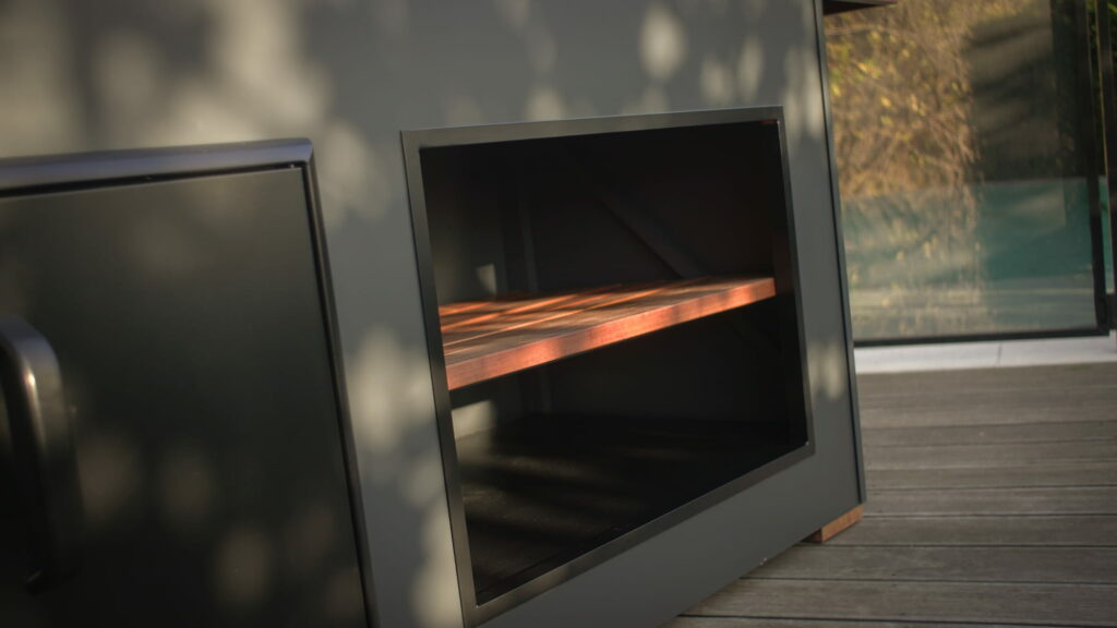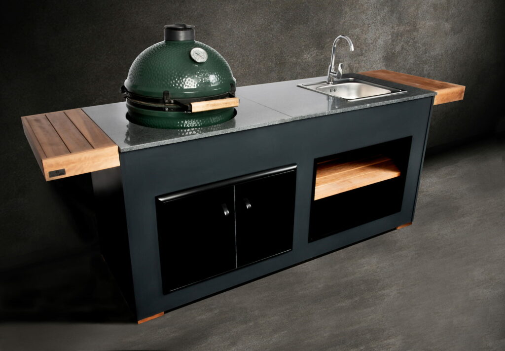 The Egg Nest on kompaktne ja vastupidav, ideaalne väiksemasse aeda või terrassile. Väikestest mõõtmetest hoolimata pakub see mudel mugavat grillimise kogemust. Graniidist töötasapind on pikendatud termopuidust külgtiibadega, mis pakuvad lisapinda toidu valmistamiseks. Roostevabast terasest kraanikaus annab lisavõimalusi toidu ettevalmistamisel. Selle mudeli tuumaks on kvaliteetne Big Green Egg L kamado grill, mis tagab stabiilse kuumuse, ühtlase küpsemise ja professionaalse tulemuse igal kasutuskorral. Köögi avatud esiosa koos termopuidust riiuliga ning roostevabast terasest ustega muudavad The Egg Nest’i praktiliseks väliköögiks, kus on ühendatud funktsionaalsus ja Põhjamaine disain.